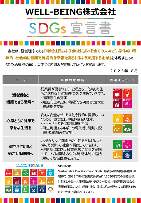 WELL−BEING株式会社 SDGs宣言書